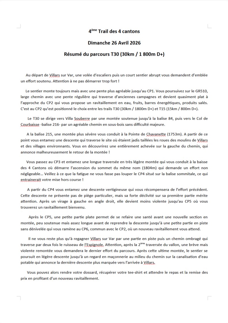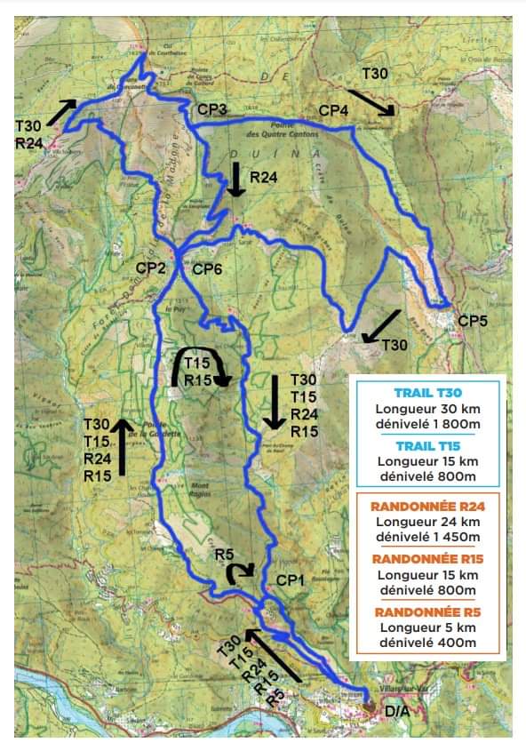 TRAIL T30 : 30km / dénivelé 1 800m – Inscription 30€ – Départ 9h00 / Tracé GPX – Résumé du parcours – Profil T30