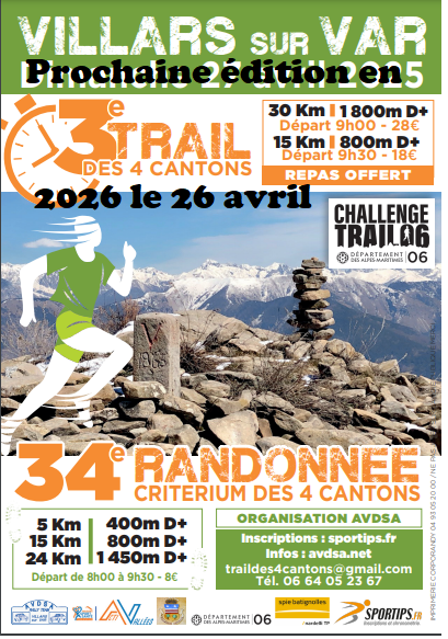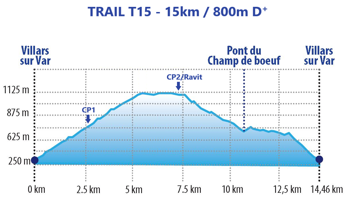 - TRAIL T15 : 15km / dénivelé 800m – Inscription 20€ – Départ 9h30 / Tracé GPX – Résumé du parcours –Profil T15